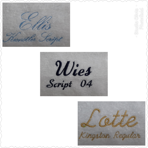 Keuze lettertype en kleur borduursel